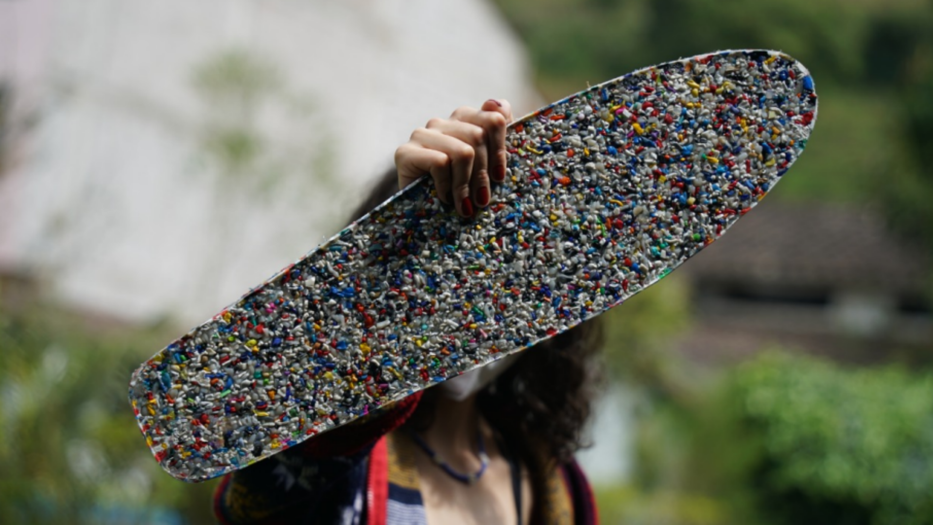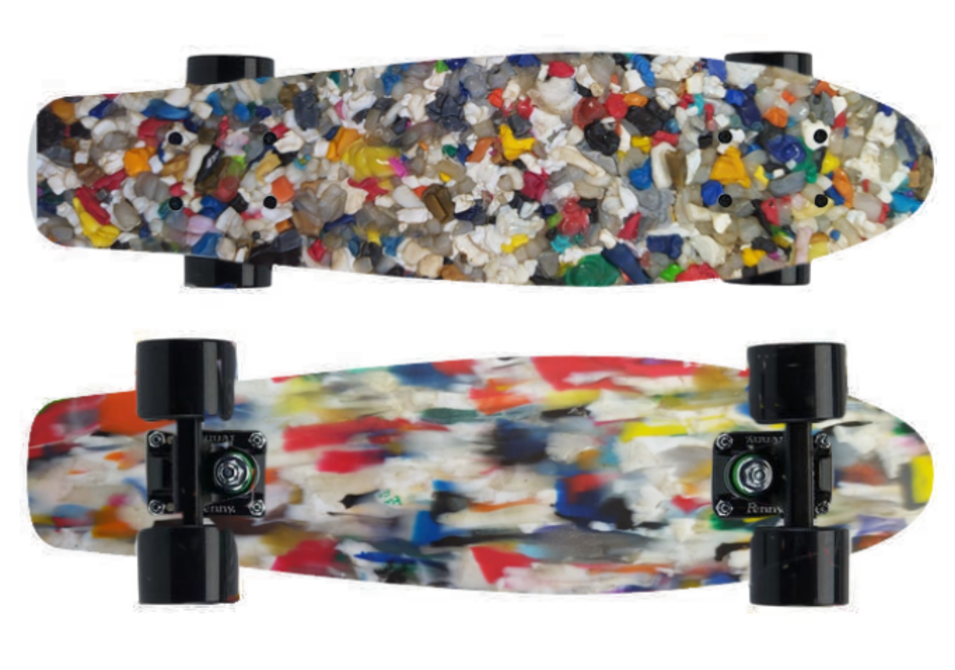 A compact skateboard designed and produced from recycled plastic, exploring a low-cost, small-batch path from material recovery to a rideable Penny-style deck through community-led manufacturing.